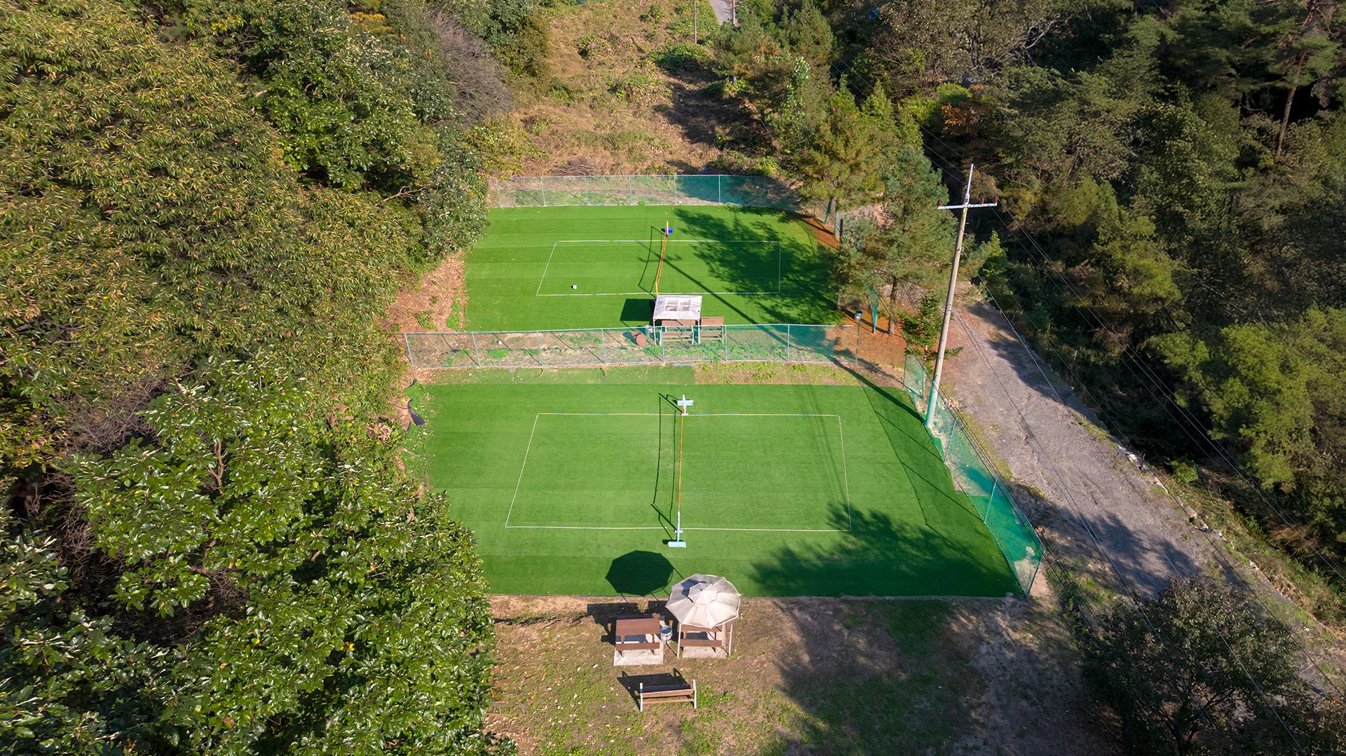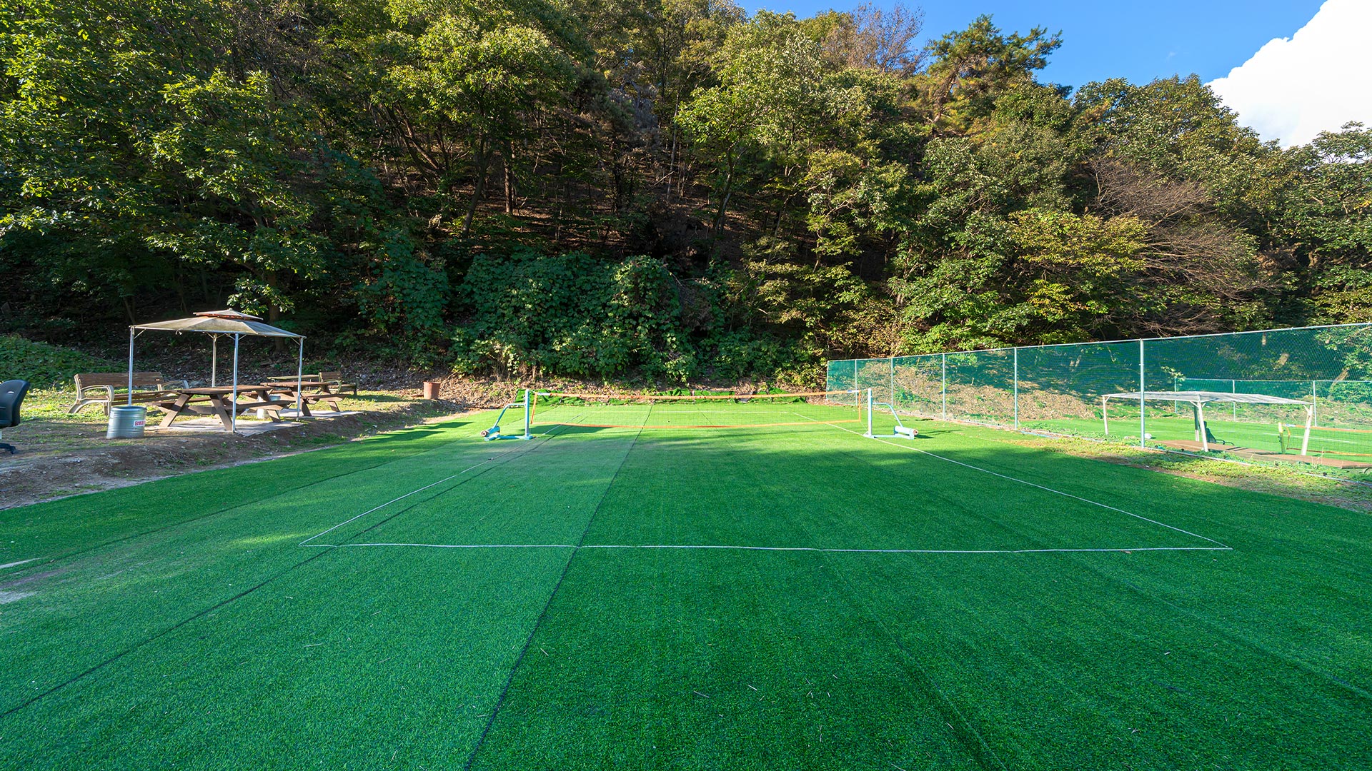 넓게 펼쳐진 잔디밭에서 족구를 즐기실 수 있습니다.