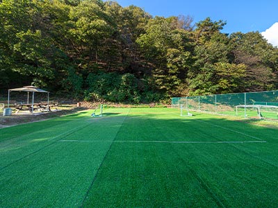 넓게 펼쳐진 잔디밭에서 족구를 즐기실 수 있습니다.